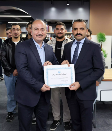 Following the library opening, an exhibition of calligraphy and illumination works by Dr. Fatmagül Saklavcı, an artist of the Ministry of Culture and Tourism, was also inaugurated.