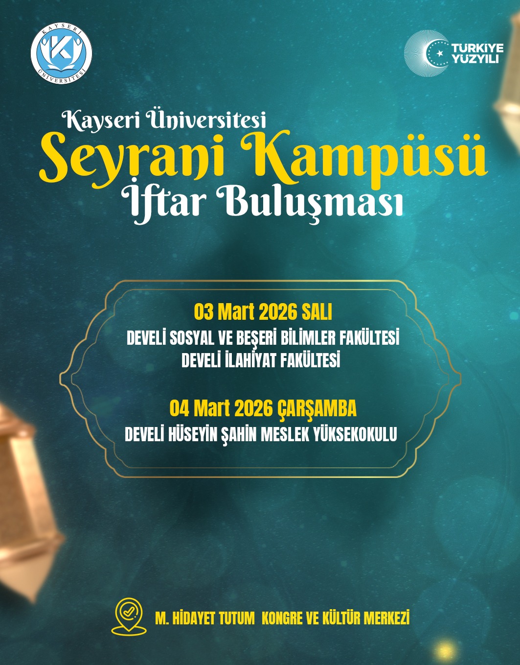 Develi Kaymakamlığı ve Kayseri Üniversitesi koordinasyonunda, Öksüt Madencilik destekleriyle geleneksel olarak düzenlenen iftar programı, Seyrani Kampüsümüzde yoğun katılımla gerçekleştirildi.