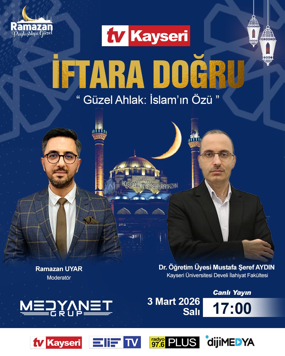 Kayseri Üniversitesi Develi İlahiyat Fakültesi öğretim üyesi Dr. Öğr. Üyesi Mustafa Şeref Aydın, TV Kayseri ekranlarında yayınlanan “İftara Doğru” programına konuk oldu.